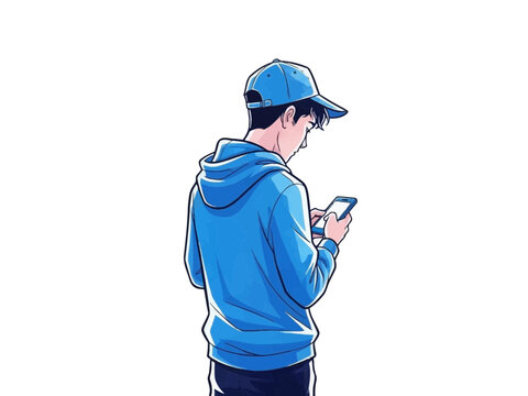 Illustrations of a man in a light blue shirt and dark pants in different poses and angles shown