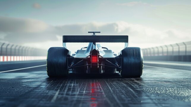 Rear back view illustration of formula car automobile on the road track. F1 motorsport competition championship, one fast velice