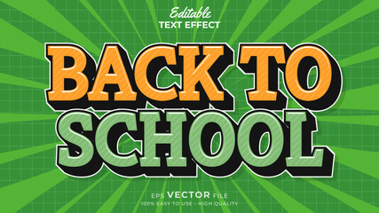 Back to school editable 3d vector text effect with cartoon pencil and book