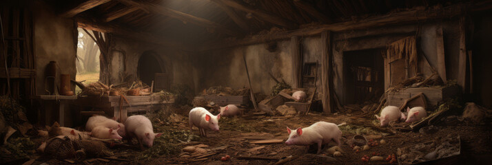 Hen sitting on nest with egg in sunlit barn, rural scene of poultry farming