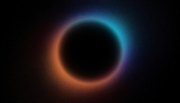 abstract grainy orange blue gradient glowing ring, black  background banner poster