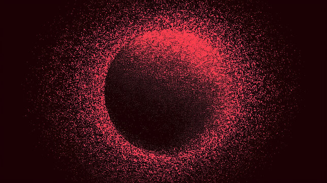 Glowing red sphere patten black background,  grainy gradient noise texture,  poster banner backdrop abstract design, power point background