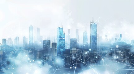 Arrière-plan numérique abstrait d'une ville futuriste avec des lignes lumineuses, concept de paysage urbain et de connexion de données.