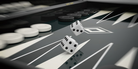 Black and white backgammon board. 3d illustration