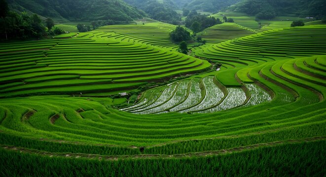Pastel colored magical landscape ideal for backgounds with lots of copy space, generative AI