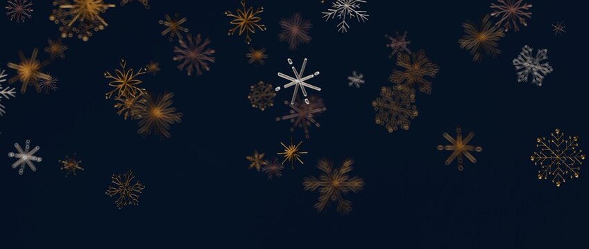 Abstract artwork of falling snowflakes. Ideal for winter holidays, Christmas, and festive backgrounds. Dark blue backgro