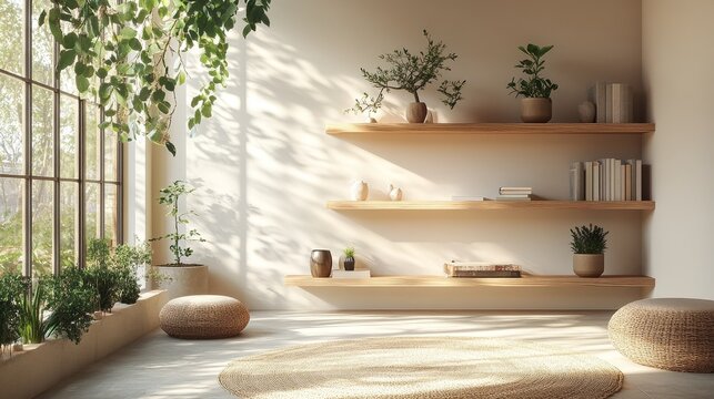 A simple beige shopping bag with brown handles, soft white background, copy space above, clean look.