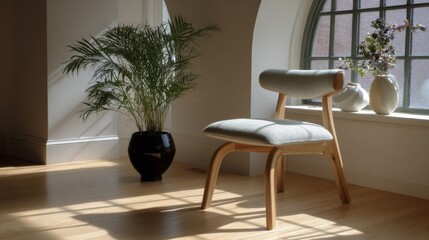 Elegant scandinavian design with backless chair in sunlit room for interior inspiration
