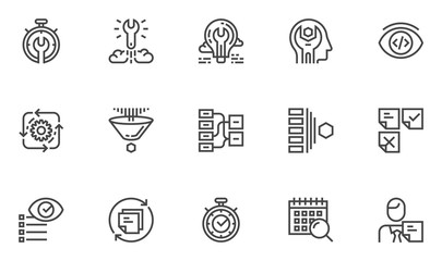 Agile Development Vector Line Icons Set. Production Management, Project Quality Control, Scrum Master. Editable Stroke. 48x48 Pixel Perfect.