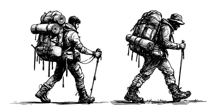 Young Women Walking at Trekking Road. El Chalten  - Argentina