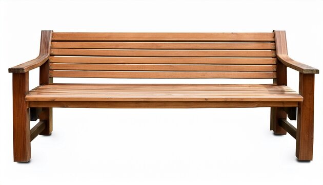 natural wooden garden bench with backrest isolated on white background