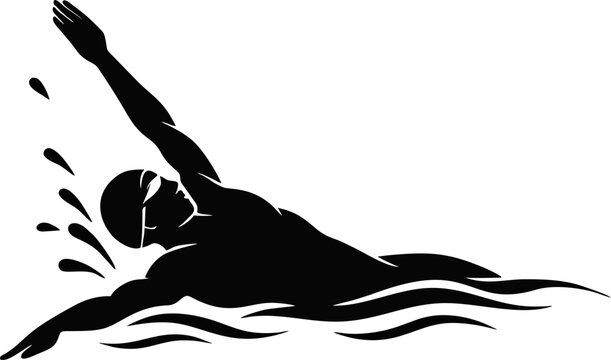 Professional Swimmer Backstroke Silhouette side view. Eps10