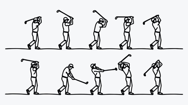 Golf swing sequence line drawing demonstrating the motions of a golfer