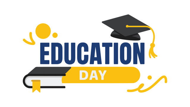 Education day modern flat illustration with graduation cap ribbon and creative elements celebrating learning knowledge and academic awareness concept