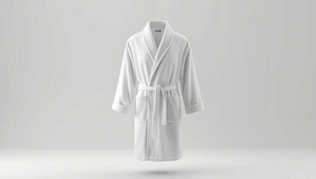 Blank white hotel bathrobe mock up, gray background