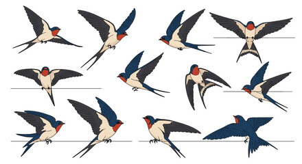Detailed hand drawn collection of birds perched on branches illustration