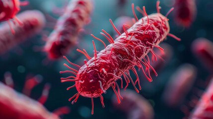 Medical background, Escherichia coli, gram-negative rod-shaped bacteria, serotype O157:H7, causes severe food poisoning, 3d rendering