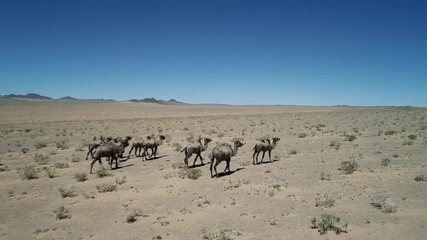 Bactrian camel in wild nature in desert. Kazakhstan.