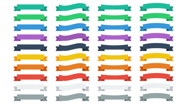 Set vector ribbons in flat colors. Vector banners ribbons. Set of 40 ribbons