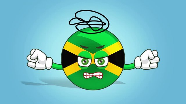 Cartoon Icon Flag Jamaica Face Animation  Evil Angry with Alpha Matte