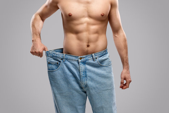 Baggy Jeans Denim pants technical fashion illustration with full length, low waist, rise, 5 pockets. Flat bottom apparel template front, back, white, grey color style. Women, men, unisex CAD mockup