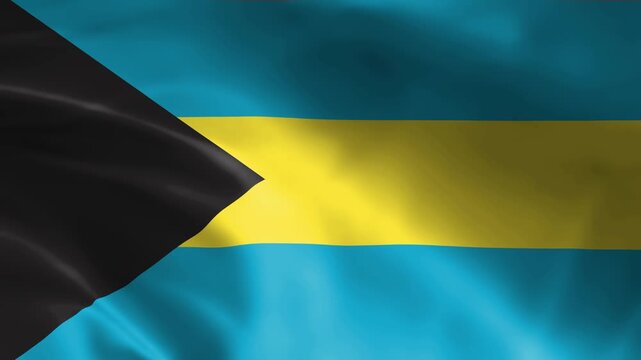 The Bahamas flag waving in beautiful scenery. The Bahamas national flag for independence day.