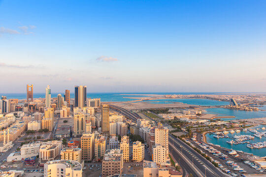 Aerial view of architecture and newly constructed areas in Manama, Bahrain
