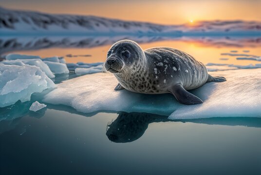 young Baikal seal on the ice of the lake, a species of earless seal that is unique to Lake Baikal in Siberia, Russia. AI generated image