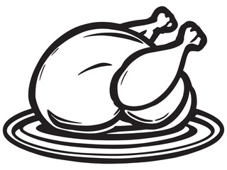 A flat illustration of a roasted chicken on a platter, with a small flame erupting from its back