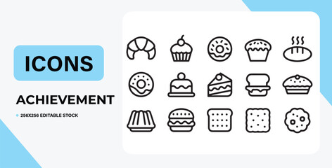 Delectable Icons: A collection of intricate line art icons showcasing a tempting array of baked goods. Each icon embodies culinary finesse, from the delightful croissant to the fluffy loaf of bread.