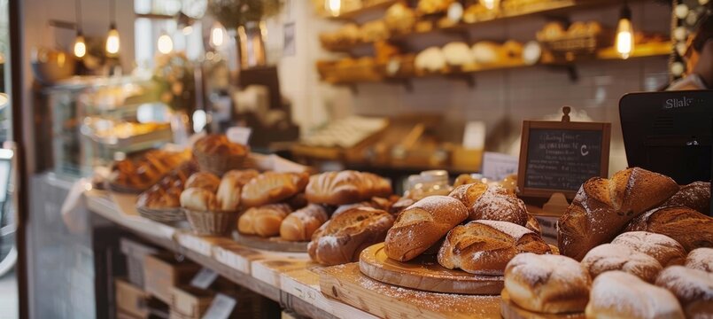 Cozy Bakery with Gluten-Free Bread and Pastries Display, Freshly Baked - Ideal for Cafés, Food Blogs, Menus