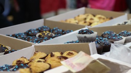 Variety of sweet baked desserts at confectionery or coffee shop, small business