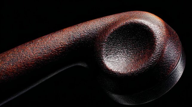 bakelite. Close-up of an antique telephone receiver with dark brown bakelite casing, textured surface. product launch decks, UI/UX mockups, designed for product launches and innovation pitches.