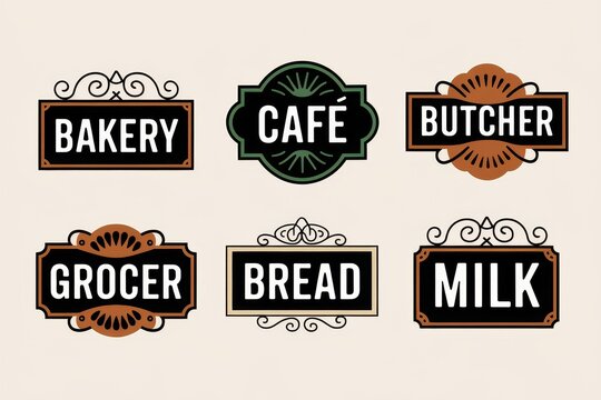 Vintage Shop Signs Collection Featuring Bakery Cafe Butcher Grocer Bread and Milk