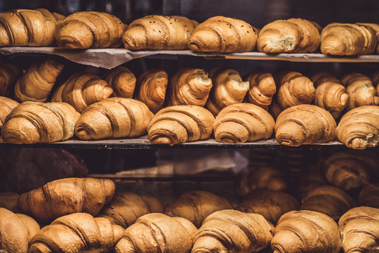 Spoiled with choice little girl picking herself some croissants in a bakery.