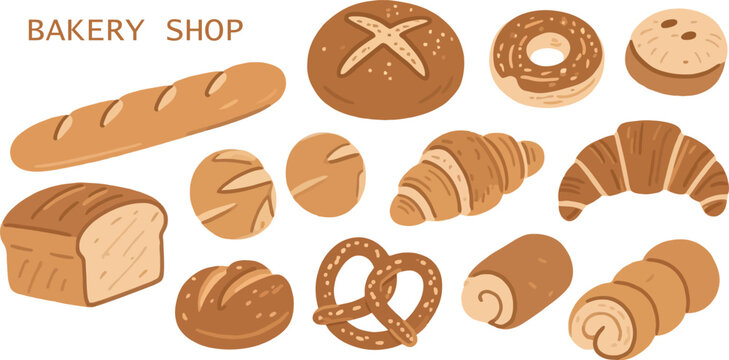Bakery Shop Assortment Vector Set Hand Drawn Breads Pastries Bagel Croissant Pretzel Roll Loaf Pastry Products Food