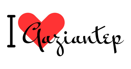 I love Gaziantep, city of Turkey. Hand drawn letters with red heart. Vector illustration lettering, modern design
