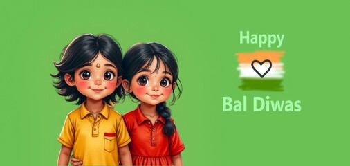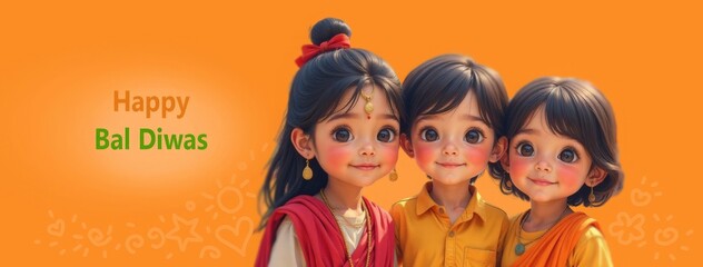 Happy Indian children in national dress on Children's Day celebration in India, Bal Divas. Poster, card, banner for visual images related to culture, traditions and festivals