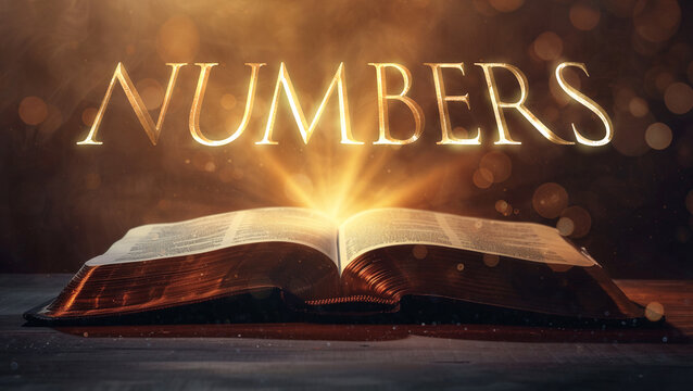 Book of Numbers. Open bible revealing the name of the book of the bible in a epic cinematic presentation. Ideal for slideshows, bible study, banners, landing pages, religious cults and more
