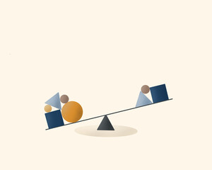 concept information asymmetry. overweight. geometric shapes lie on swing balancer for two