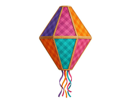 Colorful Gingham Fabric Festa Junina Hot Air Balloon in 3D Illustration