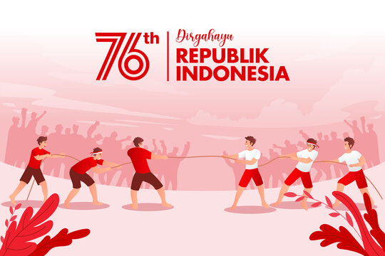 Indonesia independence day greeting card with traditional games concept illustration