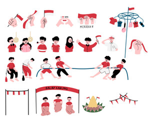 Celebrating Indonesian independence with games flat design set