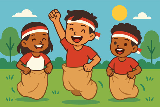 Illustration vector graphic of Balap Karung, fit for flat design, application design, graphic resources