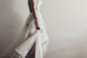 Woman walking slowly in a long evening gown
