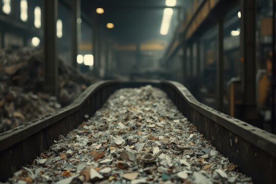 Tractor and trucks works in the sand ballast quarry on the cloudy summer day
