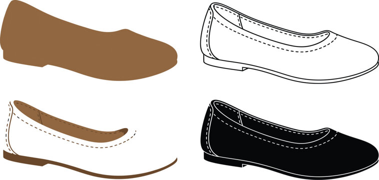 Collection elegant feminine ballet flats with ribbons vector flat illustration ballerina shoes