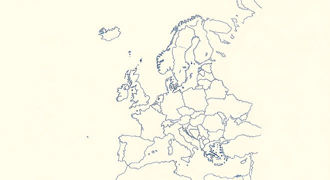 An outline map of Europe, showing country borders and coastlines in a minimalist style.