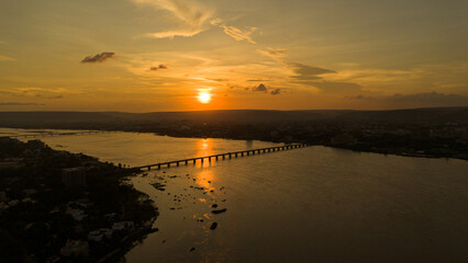 Independence Day celebration with Mali flag waving against a stunning sunset in Bamako