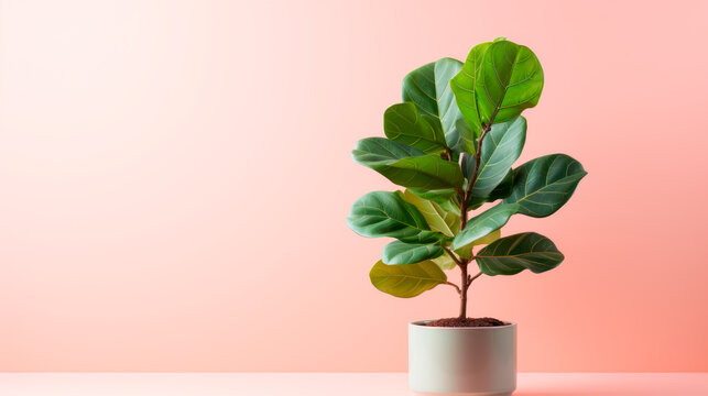 A fiddle leaf fig bambino or ficus lyrata bambino ona pink background